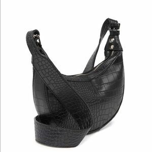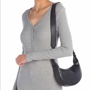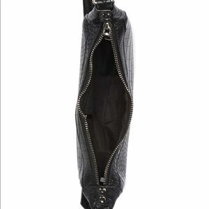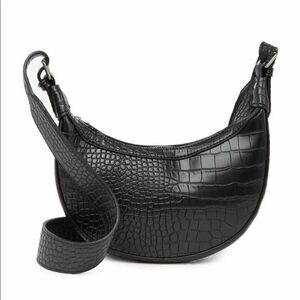 Leather Crocodile Embossed Shoulder Bag. Perfect bag for anything. Sleek and small enough for a night out but roomy enough to hold all your necessities. Adjustable shoulder strap approximately 18-20”. Zip closure with a slip pocket inside. Most Wanted USA is brand.