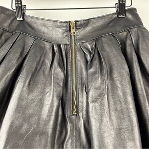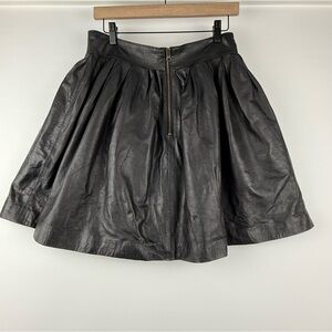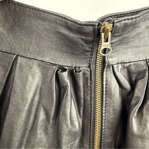 LeatherCult Vintage Leather Black Pleated A-Line Skirt w/ Gold YKK Zipper - M/L