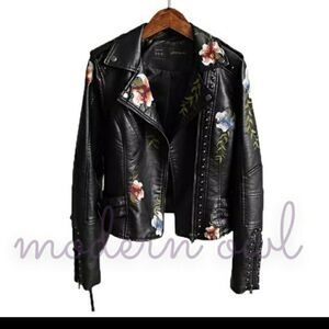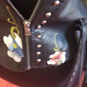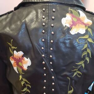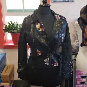 Leather Floral/accented Faux leather Moto Jacket sz L 8-10 XXL 14-16