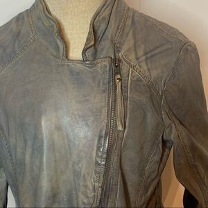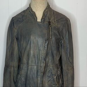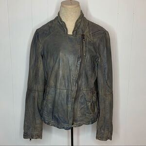 Muubaa Kendyll Upturned Collar Distorted Weathered Leather Biker Moto Jacket