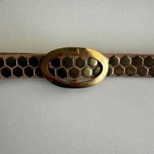 LeatherRock Brass Hexagon Oval Buckle Inset Leather Belt 40" Length