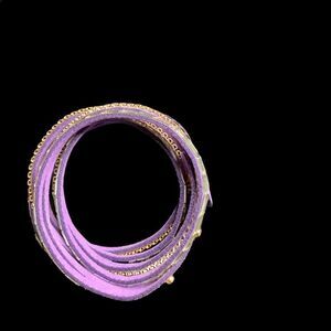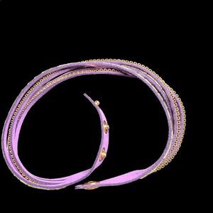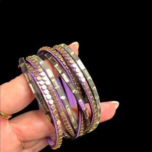 Leather and silver wrap bracelet. Goldtone snaps, purple leather.