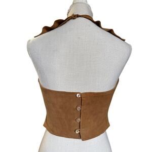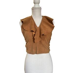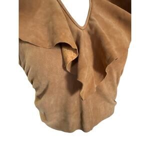 Leatherback Turtle Vintage Boho Suede Ruffle Collar Hlater Top Small