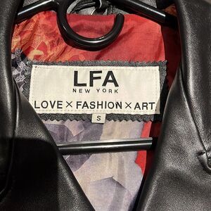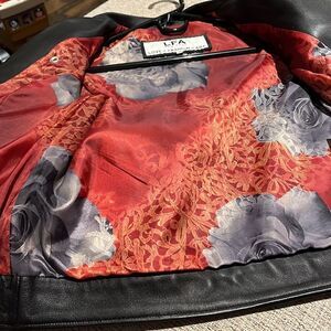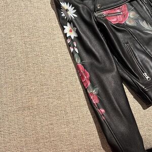 This is a ladies small black with silver hardware leather jacket. The painting on it is hand painted. In like new condition. Please know your size.