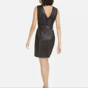 Sexy Black sleeveless leather dress with belt.