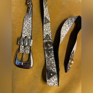 Leatherock Leopard Leather Belt With Medallions & Stones