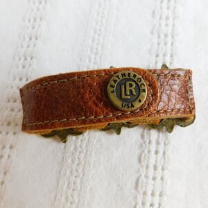 Leatherock USA Brass Genuine Leather Bracelet Cuff Marked LR Brown 7.5" EUC