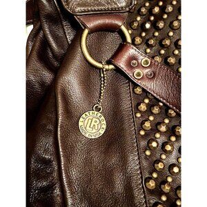 Leatherock USA Unlined Brown Leather Studded Satchel Hobo Handbag +Dustbag