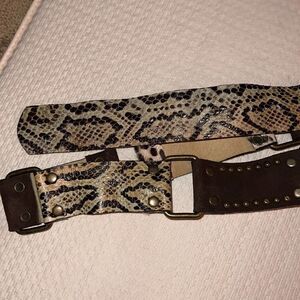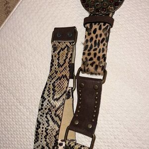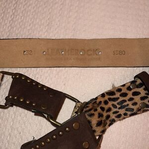 Leatherock boho pony hair/brown leather/ snakeskin patched belt w buckles and brown Chrystal ornate buckle. NWOT 37”