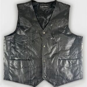 Leatherworks Mens Leather Vest Patchwork Black Size X-LARGE
