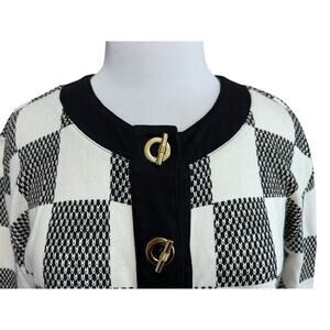 L'eau Vive Vintage Hong Kong Black Ivory Check Old Money Cardigan Toggle Sweater