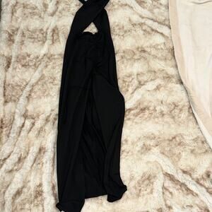 Make a bold fashion statement with this stunning Leau Azure halter midi dress. Designed to highlight your figure, this body-con dress features a high leg slit, a unique cross-front neckline, and a peek-through midriff for an eye-catching silhouette. The dress also includes a flattering adjustable drawstring waist for a custom fit. Crafted from a comfortable blend of nylon and spandex, it’s perfect for a night out or special occasion.
