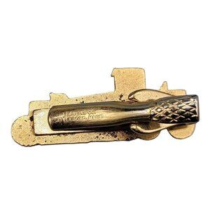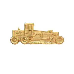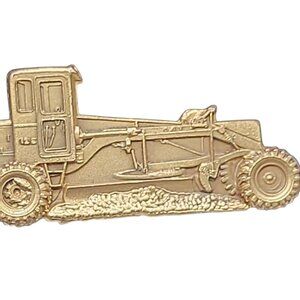 Elegant gold-plated tie clip featuring the iconic Caterpillar 12 E road grader design. Crafted by Leavens Company in Attleboro, MA, this piece is perfect for collectors and construction enthusiasts alike.