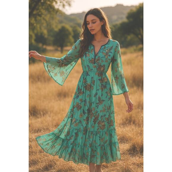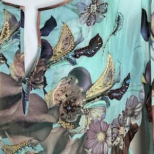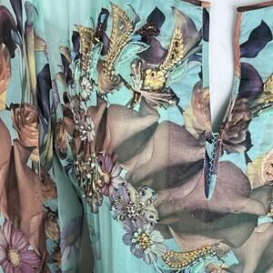 Leaves Of Grass Maxi Dress Sz 38 Medium 100% Silk Hand Embroidered Lined $495