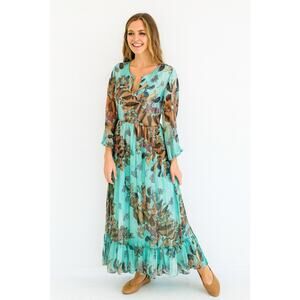 Leaves Of Grass Maxi Dress Sz 38 Medium 100% Silk Hand Embroidered Slip Liner $495