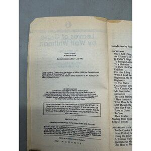 Leaves of Grass book paperback 1983 english Bantam 470pgs Walt Whitman READ