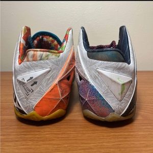 Nike LeBron 11 XI What The Lebron 2014 Multicolor Size 8 Sneakers 650884-400. Used and no box. Scuffs and marks. Small tears in sock liners. Overall still plenty of life left. Sick pair of kicks!