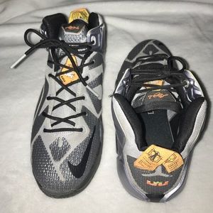 Lebron 12 silver/chrome, with black and orange accents, size 7Y. Like new, does not include box