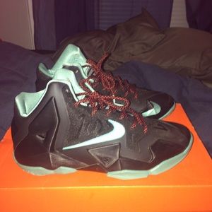 My boyfriend wants to get rid of these, they are too small for him now! Only worn twice! Brand new, no creases. The left shoe has a bit of a scratch (shown above) . Asking for 90 obo