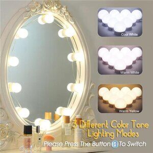 🧿Color Temperature Brightness Adjustable: The makeup light has 3 dimmable light color tunable with 10 levels of brightness adjustable for each color temperature. Stick these lights on or around the surface of your mirror to provide a flicker-free even light Meet your makeup lighting needs in different scenarios