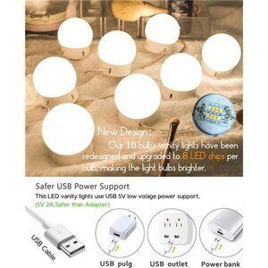 🧿Brightness Upgrade Vanity Lights: Our 10-bulb mirror light string has been redesigned and each light bulb has been upgraded to 8 LED chips, making the mirror lights brighter and adding better lighting to your vanity