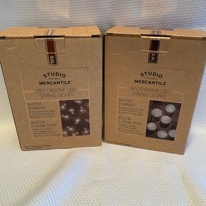 Two packs of studio decorative led string lights one of the bubs is broken on the string.