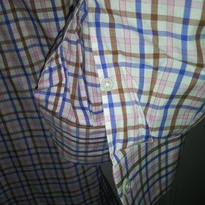 Ledbury: Men's Blue, Brown & Pink Check. Barrel cuffs, Neck: 17.5 Sleeve: 37