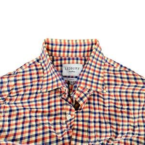 Ledbury Men's Dress Shirt 16 Neck Collared Button Down Plaid Red Blue Classic