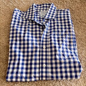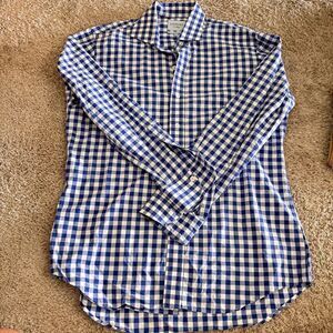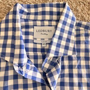 Ledbury Blue White Check Print Button Up Dress Shirt Slim Fit Size 16.5