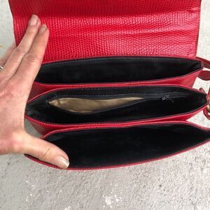 Beautiful vintage bag, which I believe to be a Lederer, Quality of the leather is great and the brass detail work is nice. Mark, I show on the strap is on the underside of the strap. That measures 9 x 6.5 and expand to 4. Inside is clean with an adjustable shoulder strap.