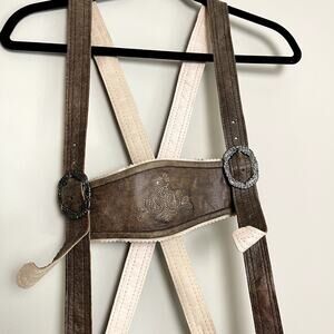 Lederhosen4U Suspenders Leather Medium Brown Embroidered Oktoberfest Sz 52