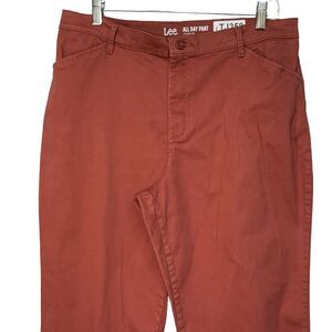 Lee All Day Straight Leg Pants Women Size 16 Burnt Orange Stretch Pockets
