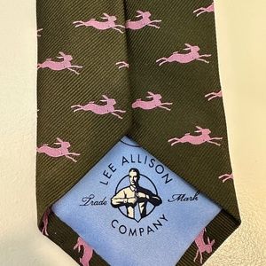 Mint Condition Lee Allison Company Rabbit Tie (Olive color with pink rabbits)