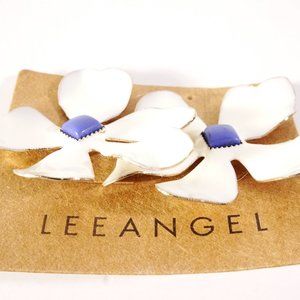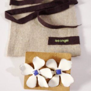 Lee Angel White Painted Blue Stone Daisy Stud earrings NWT 89
