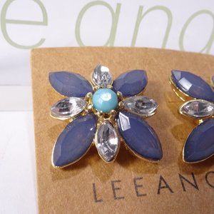 Lee Angel navy Cabochon Crystal Blue Bead Flower Stud Earrings NWT 78