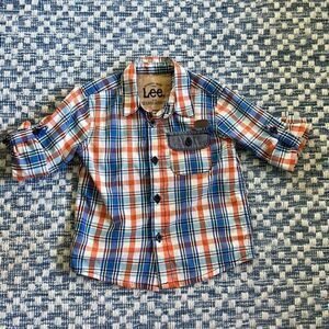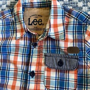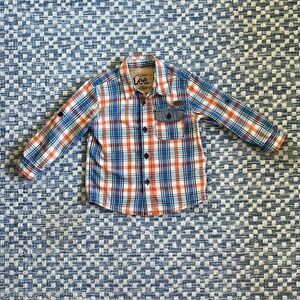 Lee Baby Boy 18 Months Orange Blue White Plaid LS Button Down Shirt