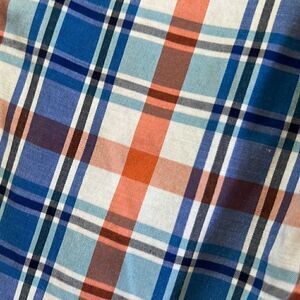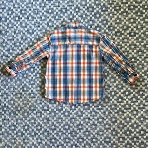 Lee Baby Boy 18 Months Orange Blue White Plaid LS Button Down Shirt; roll up sleeves will help with eating and the transition from Fall to Winter!