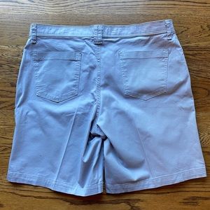 Lightweight and slightly stretchy gray jean shorts. Two front and two rear pockets. Nice condition.