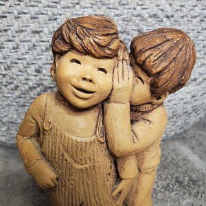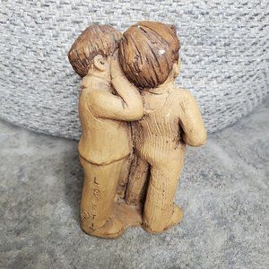 Lee Bortin Clay Sculpture Brothers Friends Whisper Secret Decorative 11” TallSigned