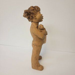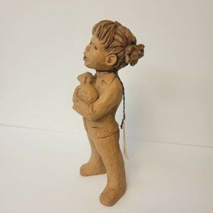 Lee Bortin Clay Sculpture Original Girl Holding The Puppy