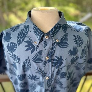 Lees men’s blue Hawaiian shirt sleeved button down shirt.