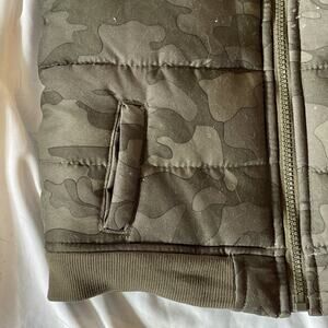 Lee camouflage puffer vest with fleece neck and inner lining. Ribbed elastic at waist. Full zipper closure. Two front pockets. Great condition.