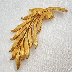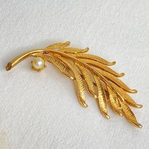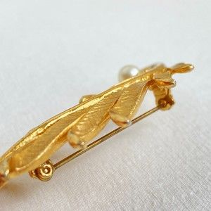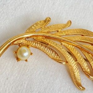 Lee Co Brooch Gold Tone Palm Leaf With Faux Pearl