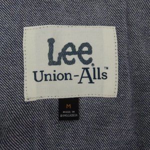 Stylish denim jumpsuit by Lee. Features rolled sleeves and cuffs. Front pockets for convenience. Perfect for casual outings.