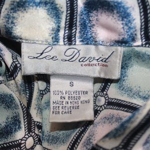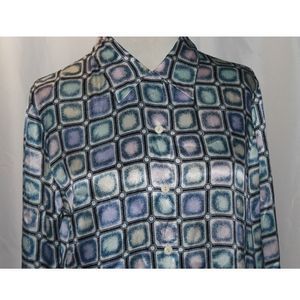 Lee David Collection Blue Satin Geometric Print Button Up Blouse Size S