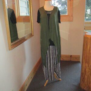 Vest measures: Bust 48 inches; Hips 52 inches; Length 22 inches; Fringe 8 inches.