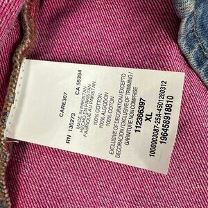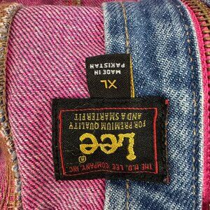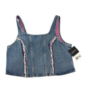 Lee Denim Crop Tank Top With Pink Frayed Trim Zip Front XL Made In Pakistan