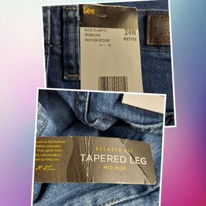NWT Lee Denim Jeans. Tapeted, Relaxed Fit, Mid Rise. Size 24W Petite. 3 pocket front. Partial elastic waistband.