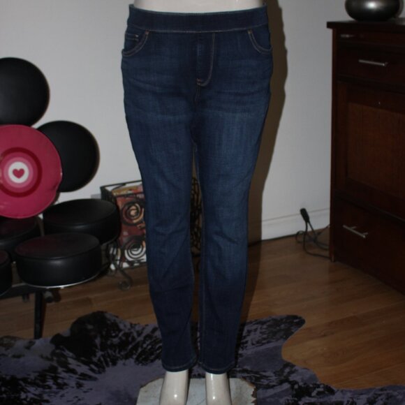 NWOT Lee Midrise 'Dream' Denim Ankle Legging, size 14 short. These are pull-on with a faux fly and 5 pockets with a 2" fabric overed elastic waistband.