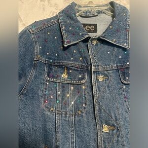Lee Denim Trucker Jacket Women’s Large Blue Buttons Rhinestones Bedazzled